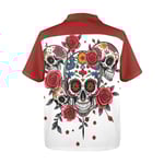 Celebrate life, heritage, and bold style with the CALAVERAS Y ROSAS Hawaiian shirt. Inspired by the vibrant traditions of Día de los Muertos, this shirt features a stunning all-over print of sugar skulls and blooming red roses—an homage to remembrance and beauty. With its crisp white base, deep red sleeves and collar, and intricate floral motifs, this shirt is a wearable work of art.