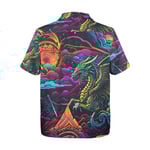 Design: All-over print featuring an intricate Neon dragon motif, blending traditional Eastern symbolism with tropical flair.